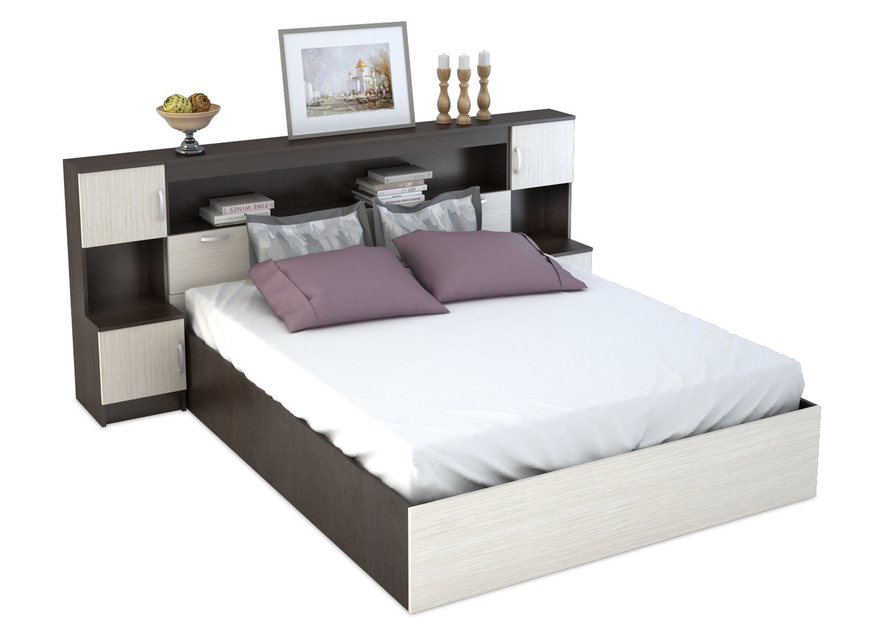 - If the housing area does not allow you to install a large bed, then choose modular model. With the help of component parts - modules, you can design a product that fits your size. Wooden modules will add extra comfort to your apartment.