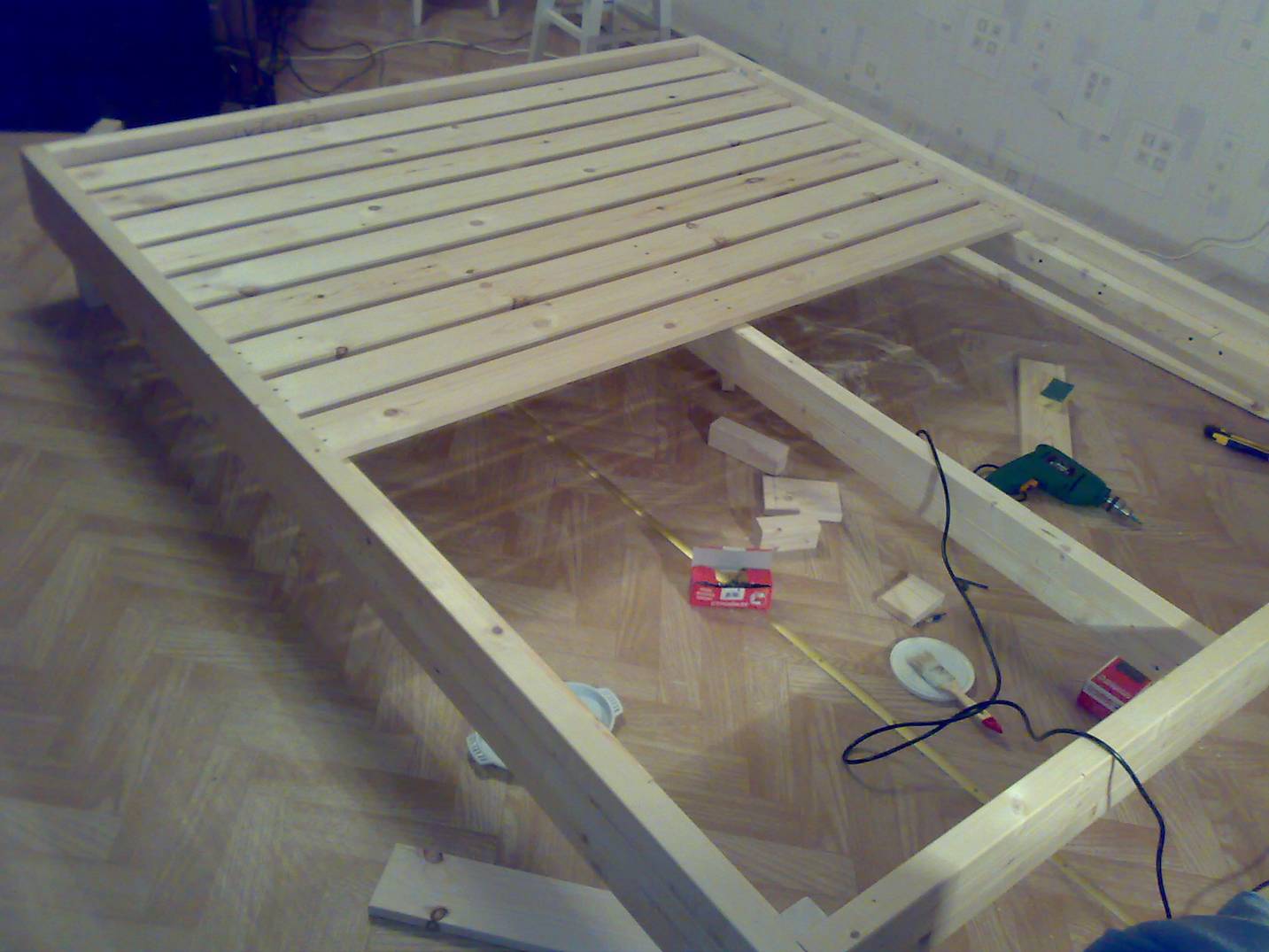 In this process, there are various nuances that only an experienced carpenter and assembler can handle. If you do not have enough practice in the manufacture and assembly of furniture, before you create a double bed, practice in the manufacture of smaller items.