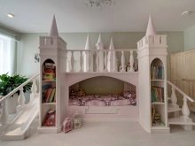 It is interesting for children not only to sleep on such beds, but also to play. Especially if they have unusual design in the form of a house or castle. Many doubt the safety of this design, especially the bed, located on the upper tier. But the robust, stable frame and sturdy parts guarantee a safe sleep for both children.