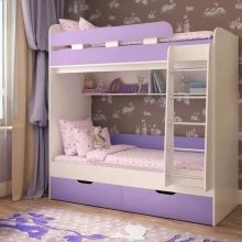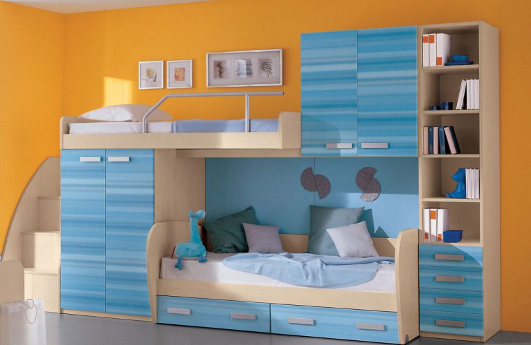 Bunk beds fit perfectly in small rooms. They allow more efficient use of space. These models of beds can be both with one berth, and with two, located one above another. The second option makes it easy to solve the problem of placing two children in a room in a dream. Two separate beds take up too much space, leaving no space for games and other activities.