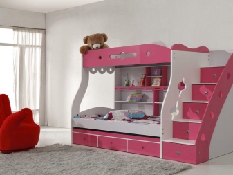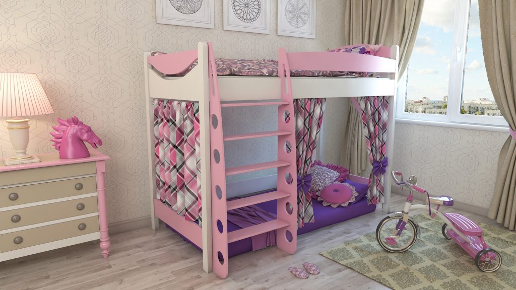 A bunk bed for girls will be an excellent option for small rooms. It will allow not only to save finances and space, but also to make the interior of the room brighter and more interesting.