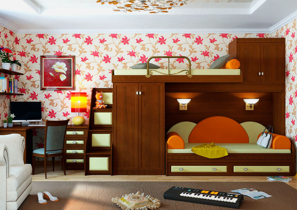 Very often, in front of families with children living in an apartment, the question arises as to how best to organize the space in the children's room. Small children are very important to have free space for games. Berths, as a rule, occupy most of the premises. Bunk beds help to solve this problem.