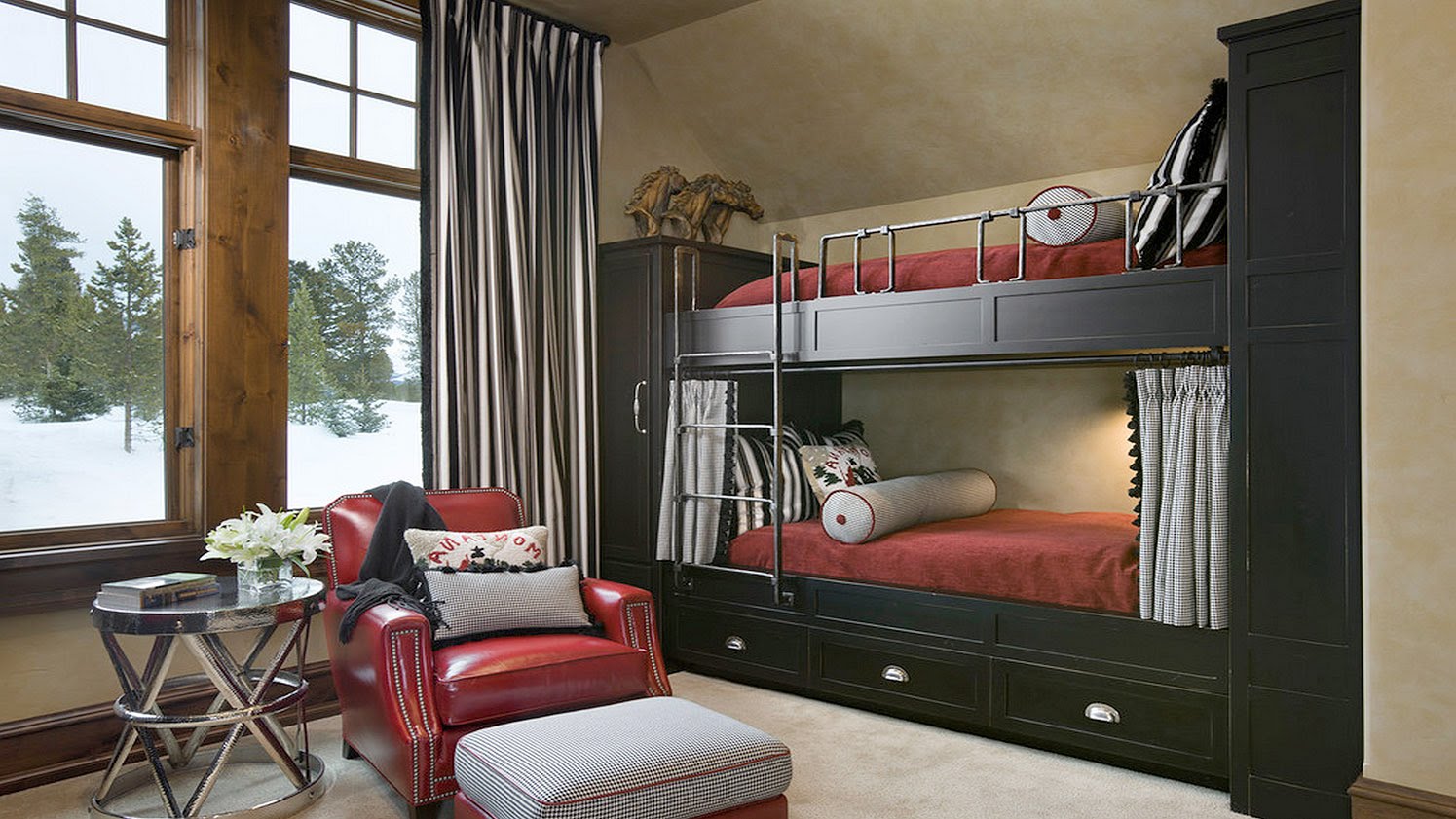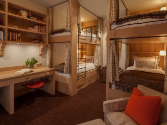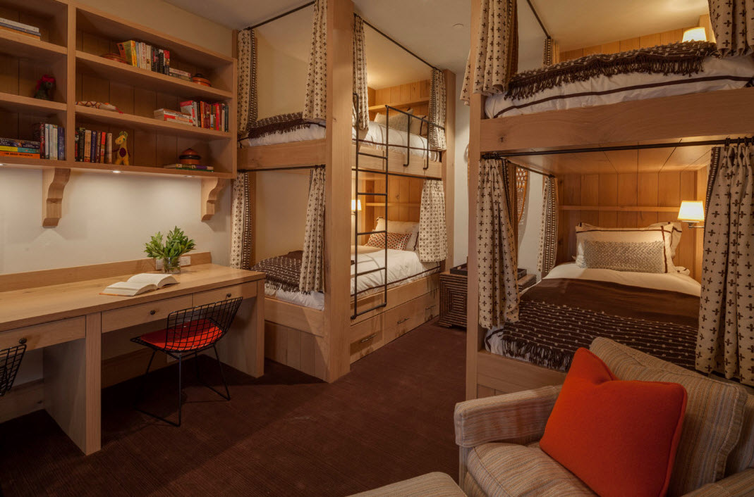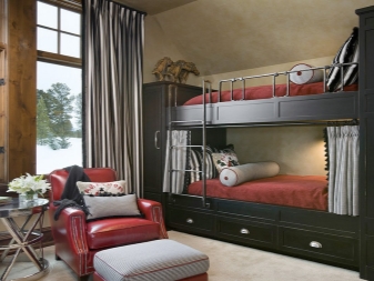 - And thanks to such a bunk bed with curtains Each family member has the opportunity, even in a small area, to feel like the owner of his own bedroom and isolate himself from the outside world.