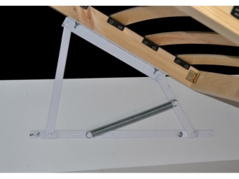 The mechanism is equipped with springs, which are responsible for raising and lowering the base.The spring system does not differ in durability: its service life is 3-5 years, after which it should be completely replaced. During operation, the bed springs quickly wear out: stretch after each opening and closing. The spring mechanism of the lifting bed is in demand because it has a low price.