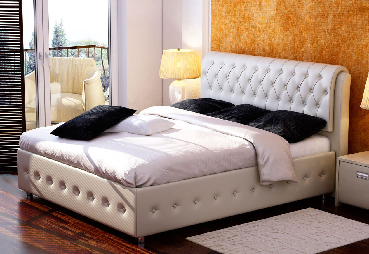 Beds with a box inside differ in price, which is made up of the type of mechanism (and country of origin) and the materials from which the bed is made: the expensive models are beds with natural upholstery or eco-leather, as well as a box with a box made of solid wood.