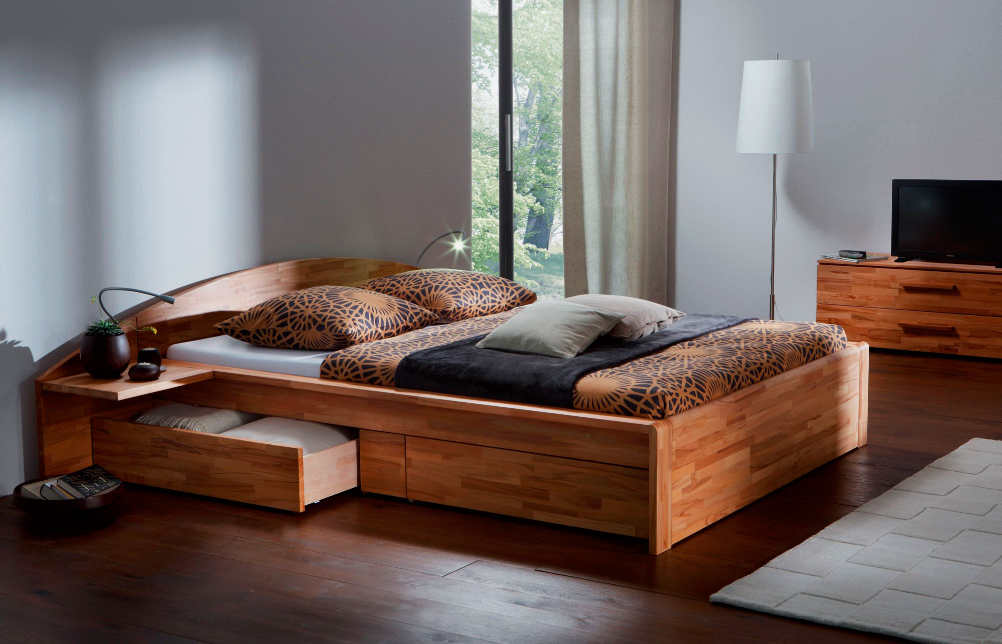 Most of the interior beds, which are presented in stores, are made of different wood species, since it is considered environmentally friendly and safe, practical and does not require excessive care, and in addition, such furniture can last for a dozen years.