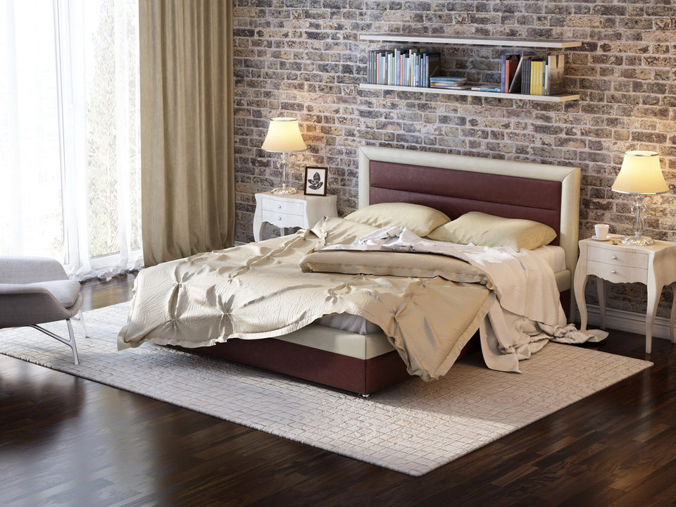 - Soft interior beds in their design can be made with a soft headboard or completely covered with fabric or leather, which can be both natural and artificial. These beds look very expensive, while they are very practical. Upholstered bed can also be with a lifting mechanism.