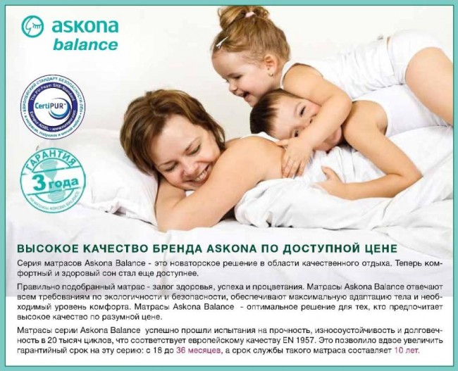 - Affordable cost. Compared with similar products of foreign manufacturers, Ascona mattresses have a very affordable price.