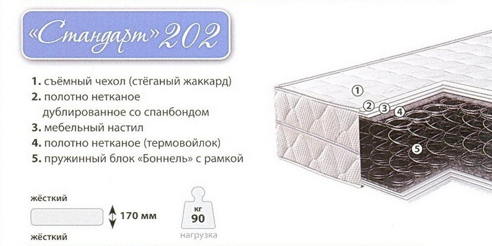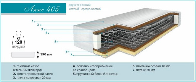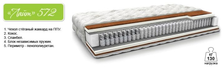 - "Light." Made on the basis of "Bonnel", with the use of techno-canvas, spunbond and polyurethane foam. Durable and inexpensive.