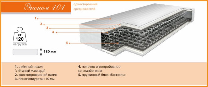 - "Economy". It has medium stiffness, consists of a biconical spring module, a non-removable coarse calico cover and furniture flooring.