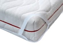 More budget option is mattressTo. It performs fewer functions, protecting the upper and sometimes the side surface. Such a model can be mounted on an elastic band stitched around the perimeter or on side rubber bands attached to its corners.
