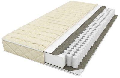 This is a budget mattress of medium hardness, made on the spring block “mini-bonnel”. The filler is an environmentally friendly polyurethane foam. Between the foam and the springs there is a layer of felt, the cover of the product is cotton.