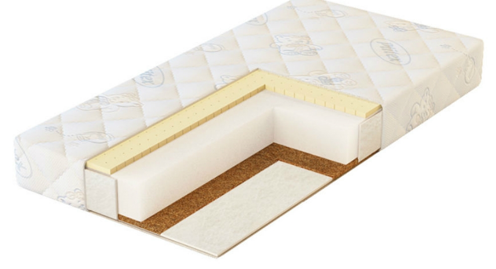 - "Junior" - springless mattress for newborns. Basis: the five-layer latexed coconut coir. This is an exceptionally natural product, well breathable, anti-allergenic, non-deformable. The series includes 6 models of mattresses with different thicknesses. For example, the model “Plitex Junior” has dimensions 139x70 with a height of 6 cm. All models have removable covers.