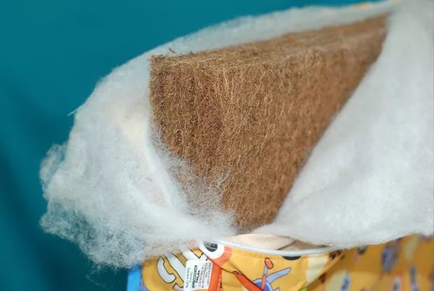 - Coconut fiber (coir) is a material that guarantees the correct growth of the skeletal system and the full development of the body, which is a plexus of coconut fiber. This filler has a characteristic brownish tint, lack of springiness, it is absolutely unbending, it has been serving for about 10 years.