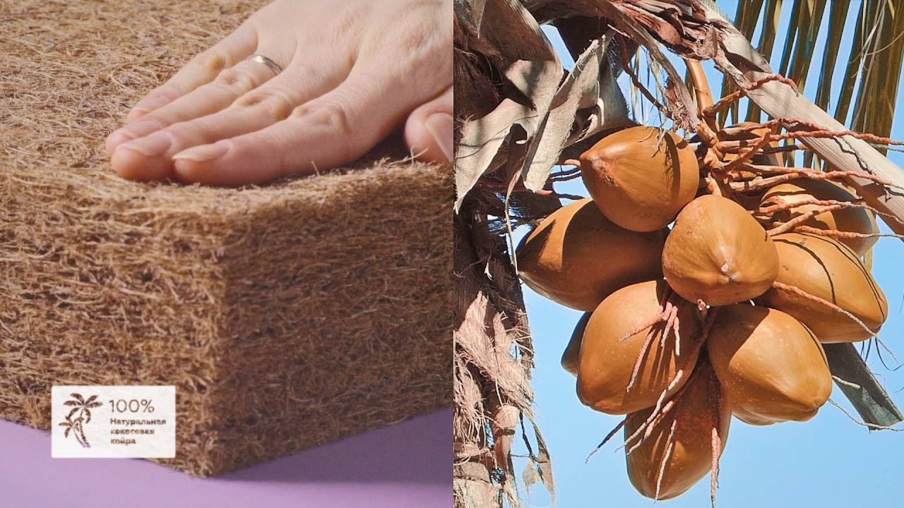 Coconut mattress is made from a special material called coir. This is a real coconut fiber that has been multi-stage processed. Coconuts are soaked in fresh or sea water for a long time - from several weeks to many months. Then the fibers are separated from the fruit, dried and sorted. Strong and elastic threads of different lengths are obtained. For the production of fillers for mattresses, the coir is additionally treated with latex, pressed or punched.