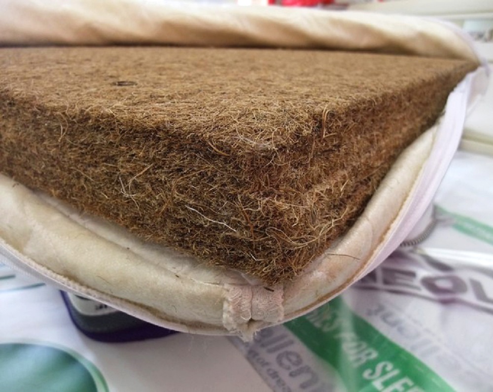 To reduce the price of the finished product, coconut fiber is impregnated with synthetic substances.Most often it is a substitute for latex, which is much cheaper than natural material. But buyers should not raise panic, because to distinguish low-quality goods is not so difficult. The main symptom of synthetic filler is a sharp smell of rubber. Sometimes sellers in stores try to assure customers that the smell will quickly disappear, but this is not so.