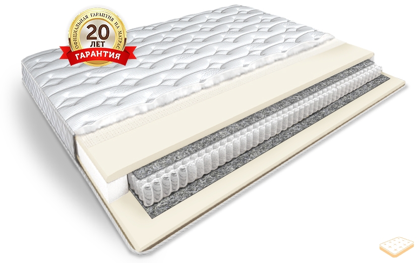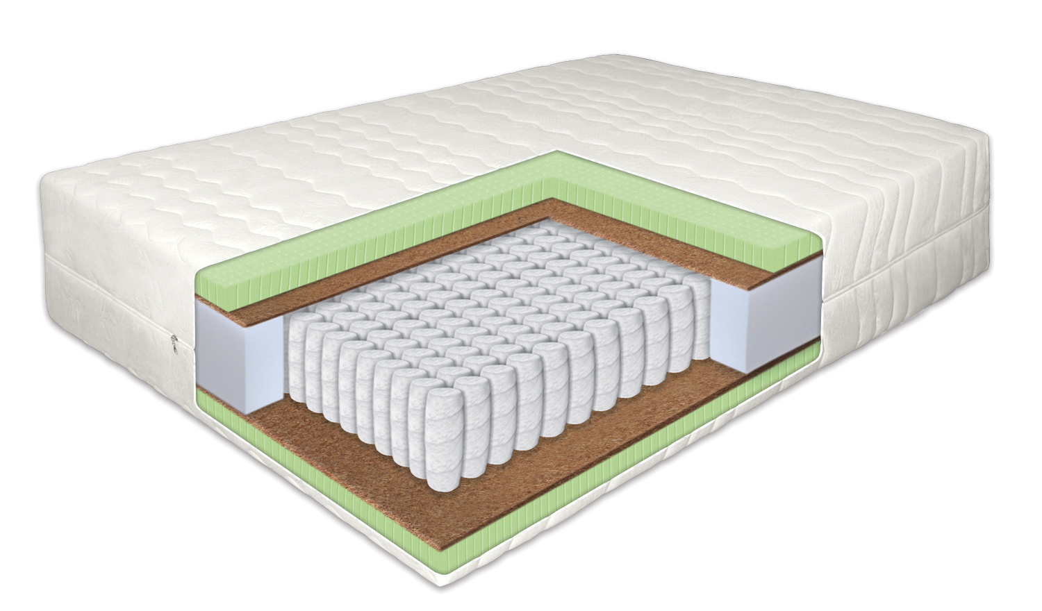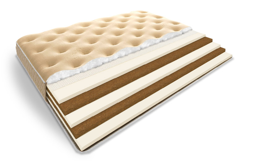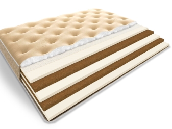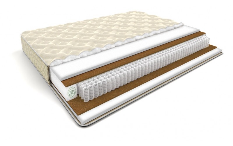 - Ecoglover Another model, made on the basis of the block of springs «Waber». Its difference from the previous one is in additional plates of coconut on both sides of the mattress, as well as a layer of foam. This design change makes the mattress more comfortable to sleep without reducing the rigidity of the base.The high level of anatomical and environmental performance makes this model an excellent basis for comfortable rest.