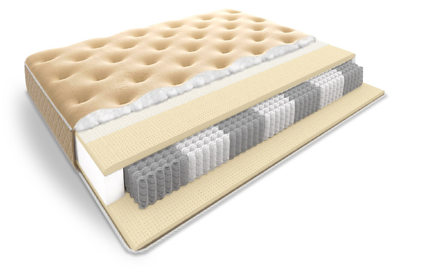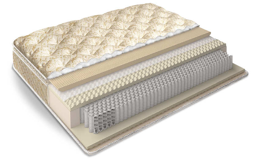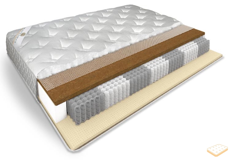- "Florence". This model also has a block of independent springs “Waber”, the size of the elements of which can vary from 9 to 16 cm, which, in turn, allows you to choose the height of the mattress. The top layer consists of a flex package, which is a coconut plate. The cover of this model is made of hypoallergenic fabric "Flora Premium", which does not absorb moisture and prevents the growth of microflora and the appearance of dust mites.