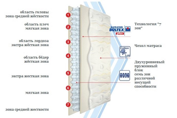 The basis of these spring mattresses is a special spring block. He is able to provide a variety of mattress hardness levels: