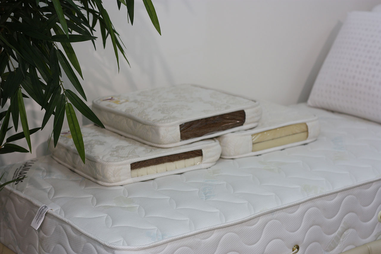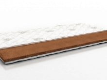 - Coir Coconut. Considered the best padding. It is not subject to the effects of putrefactive bacteria and moisture and does not deteriorate even with increased dampness (this allows the use of mattresses with koyra stuffing in summer cottages). In addition, it is well ventilated, ensuring maximum comfort for the sleeping and has hypoallergenic properties. At the same time, the filler not only does not cause allergic reactions, but also slows down the development of pathogens. Such a mattress is practical and durable - the lifetime is severalyears old.