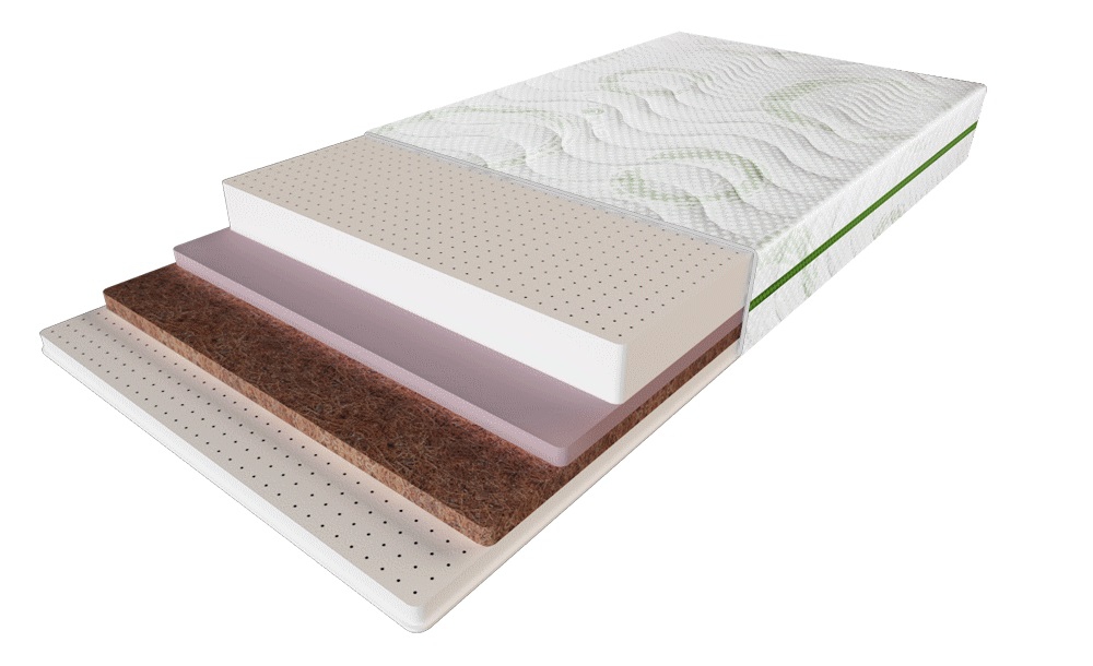 - Coconut coir. This product is a fiber that is derived from coke nut.To increase the strength, coir is additionally impregnated with latex. This also affects the service life. Coconut mattresses have several characteristics: high rigidity, durability, antibacterial, hygroscopic.