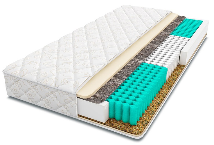 It may be spring products, which consist of a large number of layers. These are solid plates, polyurethane foam, cotton fiber, and in the center of this design is a block of independent springs. Such a mattress is usually covered with knitted fabric. Medium-hard mattress is made of latex, polyurethane foam, struttofiber, spanbod.