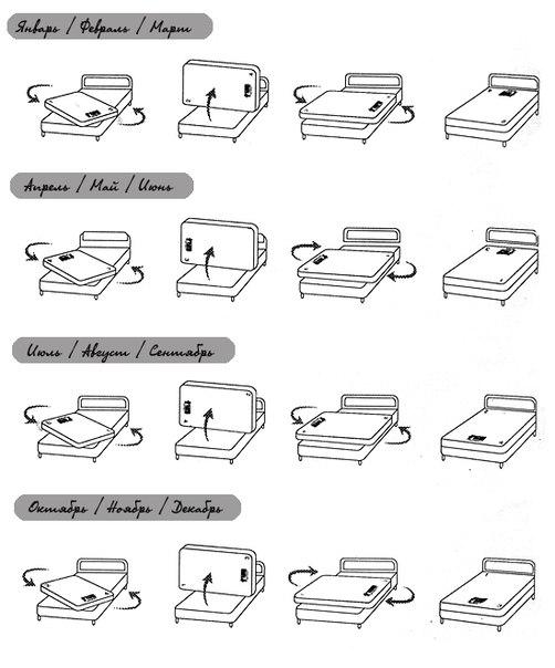 After buying a mattress you need to provide him with proper care. So, initially it needs to be ventilated so that the production smell disappears. In case you do not plan to use the mattress in the near future and want to put it in the closet, it should also be properly stored. In no case should not be left in a vertical position, because the uniformity of the filler is reduced, as well as its orthopedic properties.
