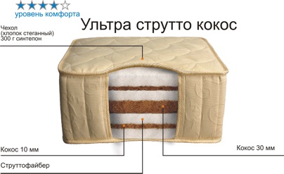 A very interesting alternative is a product with different hardness of the parties.It can be turned over when it will be uncomfortable to sleep on a hard surface. This is a great solution for those who are just getting used to such a mattress. This may be a model that, on the one hand, has a filling in the form of a strutto, and on the other - in the form of polyurethane foam.