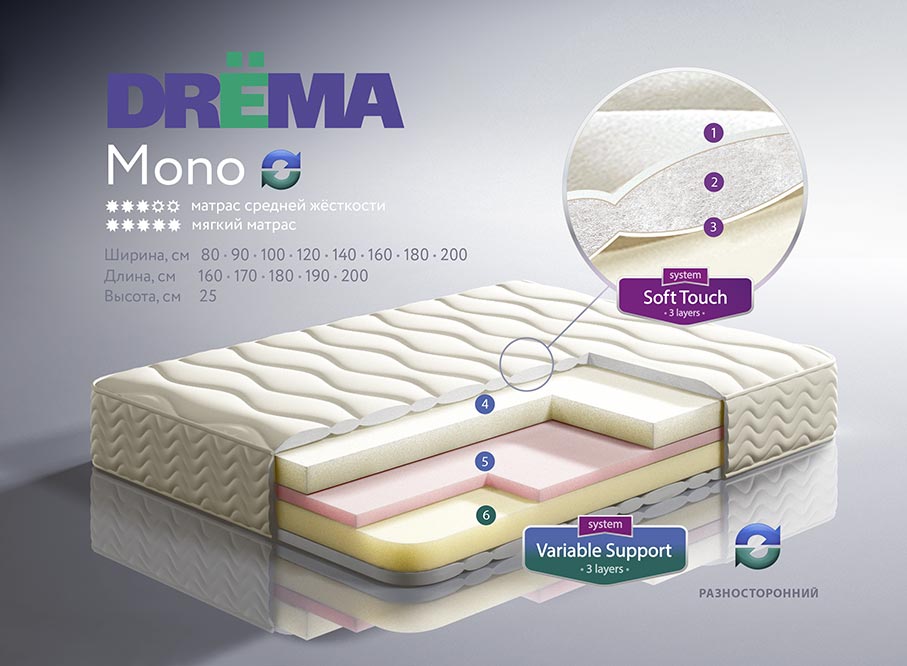 These are the most versatile models that have an interesting design. So, one side is super hard and the other is medium hard. They are great for those who often have back pain. At a time when the disease is exacerbated, you can sleep in a tougher country. During remission, when the pain subsides, you can turn it over to the softer part.