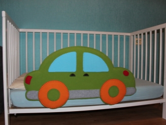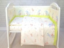 If your child is very small and you need a soft curb around the perimeter of the bed, in order to avoid injury to the hands and feet of the baby, you must give preference to natural fabrics that will not cause allergies to the baby. The size of the fabric should match the size of the sides of the crib. As a filler, you can use a synthetic winterizer. This way you will have thin pillows, corresponding to the width and length of the bed. They are fastened with strings or velcro, which must be provided in advance in the design of the rim.