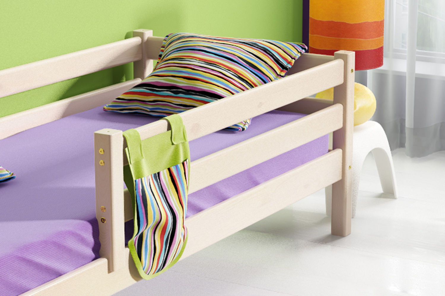 A big child, in principle, does not need a limiter. As a rule, these are teenagers, and the curb on their bed, rather, carries a certain design idea. For these children, beds up to 200 centimeters long are purchased and the side usually takes no more than a third of the bed.
