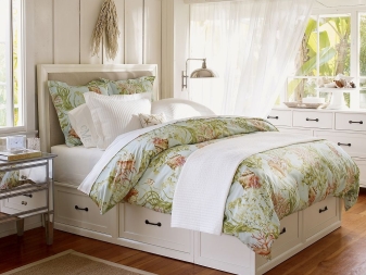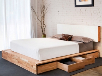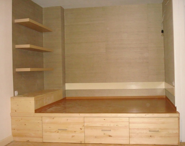 The device bed podium explained by the name. For the device of this bed a pedestal is organized. You can buy a ready-made version, but you can do it yourself. A mattress is placed on the top of the podium. At the same time bedding should be slightly less than the structure itself. Very often boxes are placed in the podium, in which it is convenient to store not only bedding, but also all sorts of trivia.