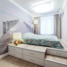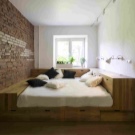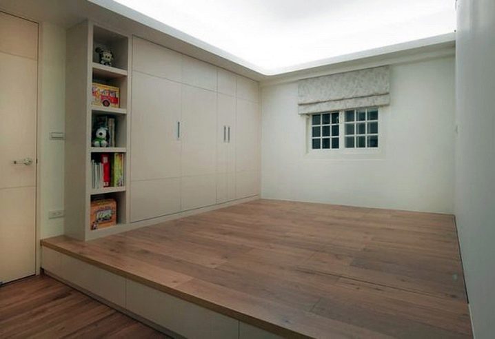 In the “Khrushchev” it is also quite possible to build an uncomplicated podium structure, considering the particular layout of such an apartment. Small area and low ceilings are not an obstacle for those who want to equip a compact and comfortable sleeping place, but all this must be taken into account when planning sizes. The main condition for placing the podium in "Khrushchev" and other small premises - its height should not exceed 20 cm, so that the "pressure" of the ceiling would not be psychologically felt.