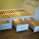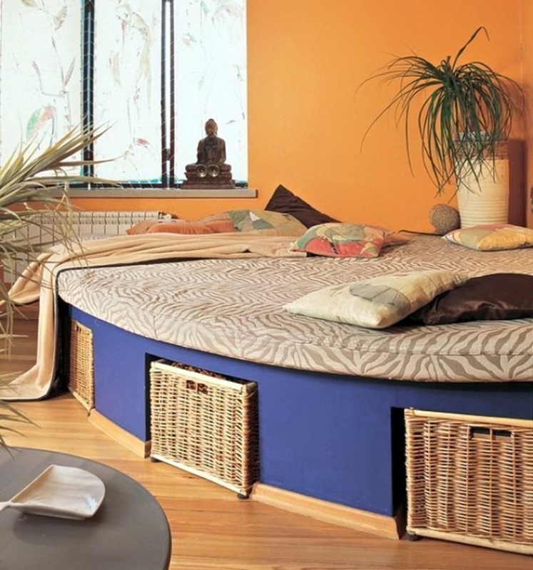 Also, any frame basis with a filling in the form of boxes will be a salvation for a person who has a lot of things, but does not want to acquire a large amount of furniture in the form of large-sized commodes or wardrobes: everything can comfortably and compactly fit into the built-in drawers.