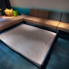Monumental Monolithic CatwalkCast in concrete is good for people who have a lot of weight, both literally and figuratively. If you build it at home, such a bed will not sag and will not break under the weight of a large person's weight. Also, this design looks great in the interiors of large houses, especially if the podium has a non-standard circle or semicircle shape. Finishing of leather or leatherette in this case is the most preferred, since it especially emphasizes the solidity and stability of the structure.