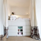 If the room has a niche or alcove - this is the perfect place to install a classic catwalk.because it is not necessary to design a retractable bed in this case. It can simply be installed in a niche, additionally equipped with modest necessary interior items, depending on the wishes of the owner. The standard dimensions of the alcove are 2.40x2.50 m, which allows you to place in it a double bed with drawers below. You can hang a curtain to make a bed of beauty and originality.separating the bed from the main space of the room, as well as equip the alcove with several sources of quiet light.