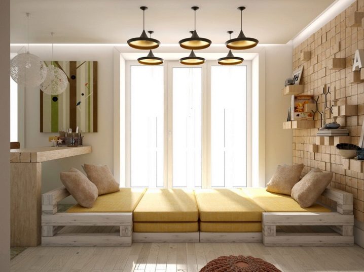 Installing the podium in the loggiaconnected with the room will perfectly fit into the living space of creative natures, which especially pleases the Japanese style. If you remove the subwindow unit, insulate the former loggia and build a podium adjacent to the window, the effect of an oriental note in the interior will be stunning. The additional heating system can be hidden under the same podium, and the room can be decorated with wallpaper with oriental patterns.To complete the picture you can put in the room a few colored rugs, pillows and handmade red lamps.