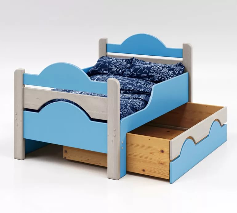 Cot for the little ones can be transformed by a special mechanism and used by a child of school age. These beds are called “grow up”.They have additional compartments, which are advanced, you can easily increase the size of the bed. There are two types of such products, designed for ages from 0 to 10 years and from 3 to 15. Such a universal size range allows parents to change their bed only once, avoiding unnecessary costs.