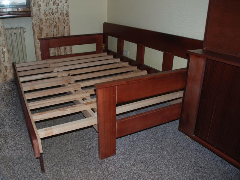 The main materials for the manufacture of beds with sliding mechanism - chipboard and wood. Often they are combined in one product. Sometimes the folding mechanism is provided with metal legs for fixing one of theparts of the structure.