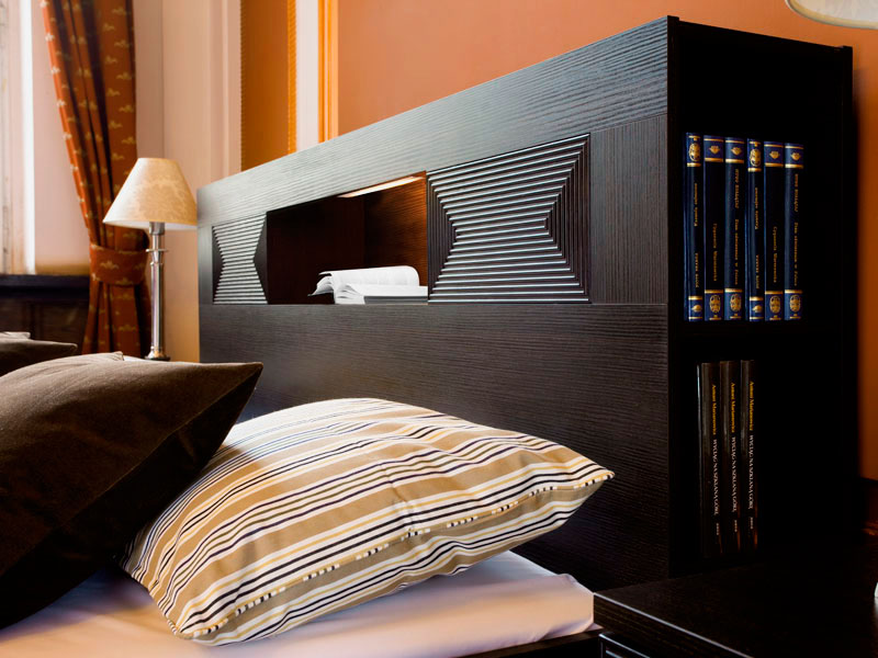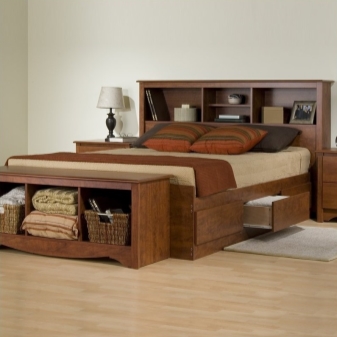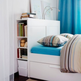 The head of the bed becomes a familiar place - it looks original and stylish. But where is more capacious the model of a bed with a “headboard”, which is located on its long side: it accommodates more things and books.
