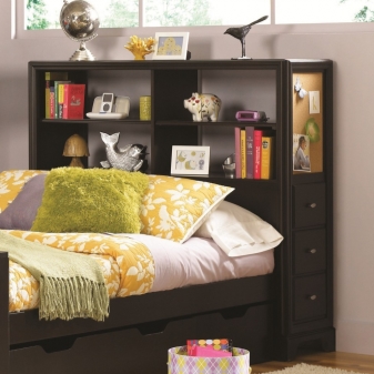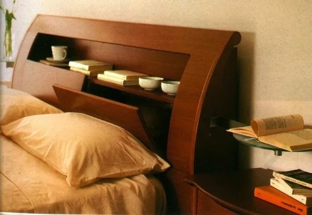 Beds with shelves on the back are especially popular with children and creative people.which are used to “keep handy” books and notebooks, favorite knick-knacks, so this furniture will definitely take root in any bedroom.