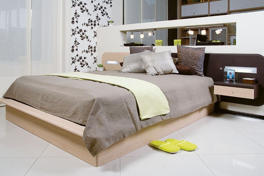 - Buying a ready-made bed with a headboard - very good choice. Note that this design is quite compact and does not "eat up" meters in the room.