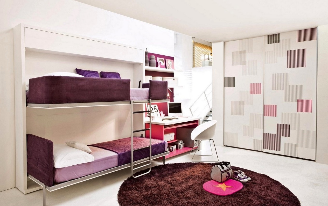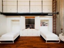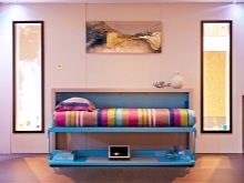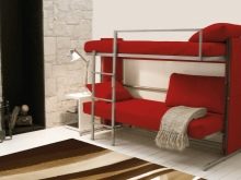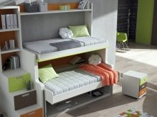 - Two-story transforming bed will be an excellent option for two children in the family. This is a complex solution of designers, which includes not only the sleeping places themselves. It is easy to imagine such a bed with bedside tables and shelves, which, thanks to a carefully thought-out composition, harmoniously fit into the overall picture.