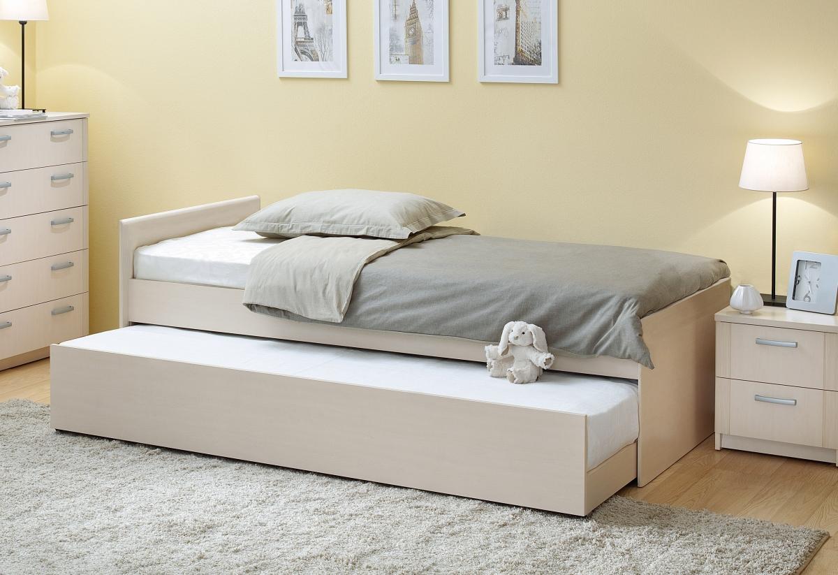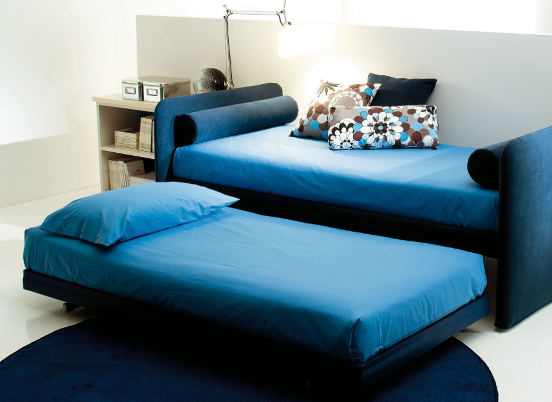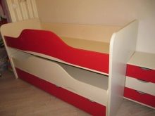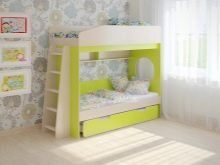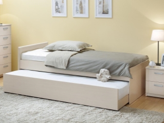 - Transforming bed with a vykatny berth - This is one of the simplest models: the spare berth is built into the other. With it, you can optimize the space, and the ability to organize a second bed will be available at any time.