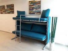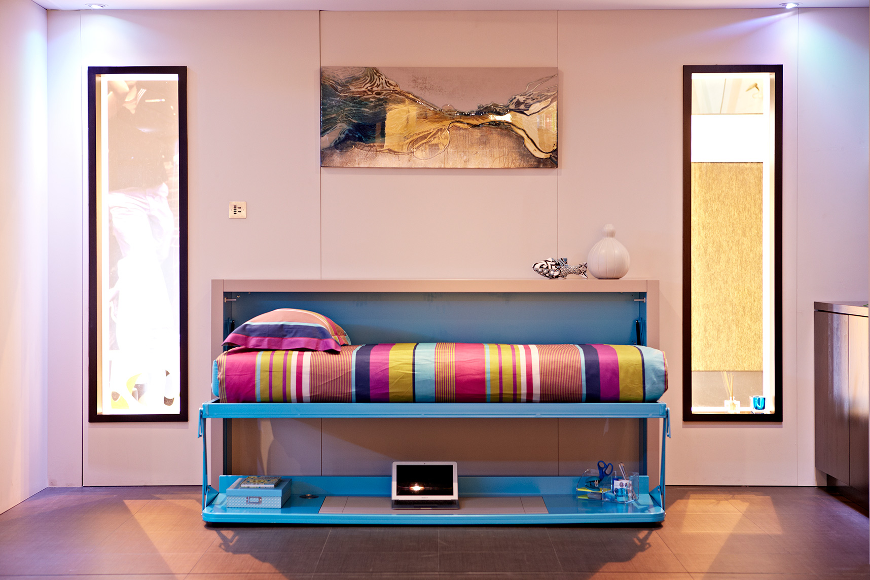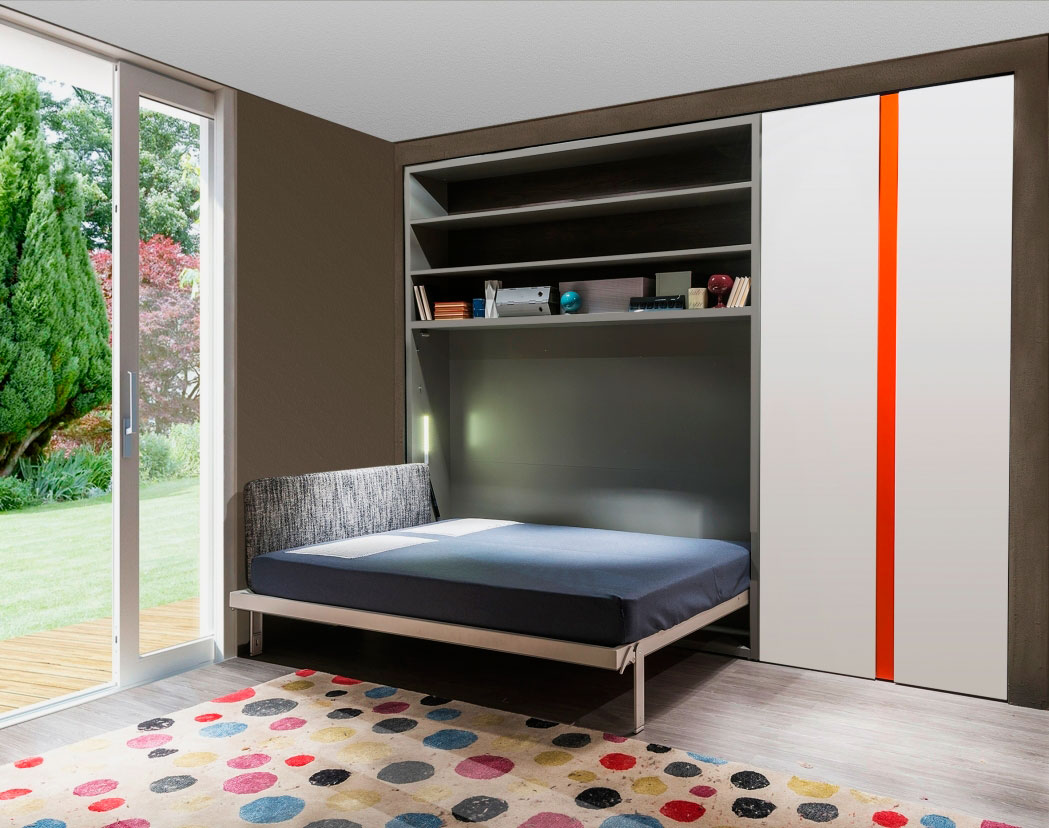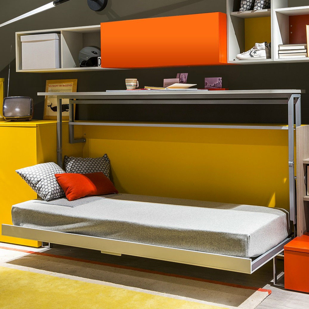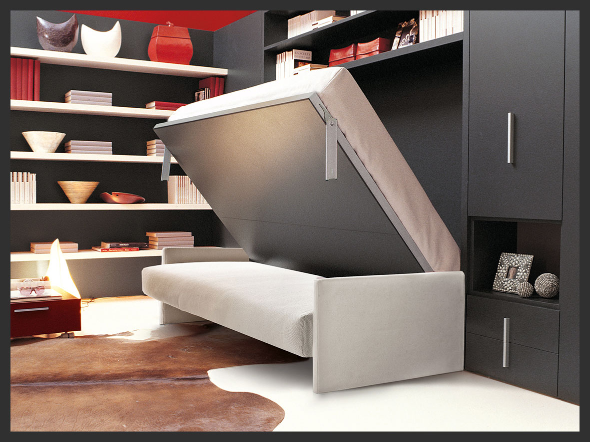 - Leaders in terms of production of up-and-down transforming beds are two well-known companies from Italy - Colombo 907 and Clei. They produce durable and safe transforming mechanisms. One of the most popular models of Italian designers is a modular bed-transformer: a sofa-table-wardrobe-bed.