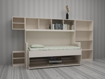 Beds, chests of drawers are especially in demand in small apartments and studios. There is a large selection of models for children's rooms, ranging from cots for the youngest with changing tables and comfortable drawers to bunk beds for schoolchildren. Small transformers in the form of poufs, chairs and benches are used in offices where it may be necessary to stay working overnight.