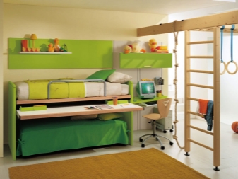 In the color of lime or honey, you can arrange a two-story transforming bed for school-age children or a bed for a teenage girl.