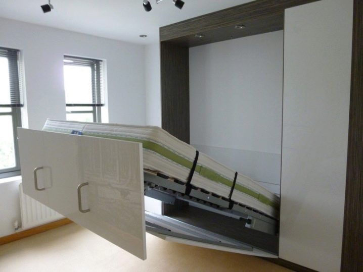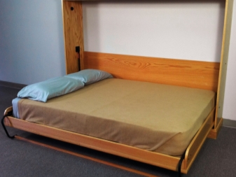 Frameworks for transforming beds are made of solid wood, often in combination with a durable metal alloy. There are lighter beds on the metal frame, which facilitates their transformation both manually and using any lifting mechanism. Of course, the frame of the combined construction is both stronger and looks more aesthetic, but it requires more advanced mechanics of raising and lowering the bed, which is able to withstand the weight of wood and metal.