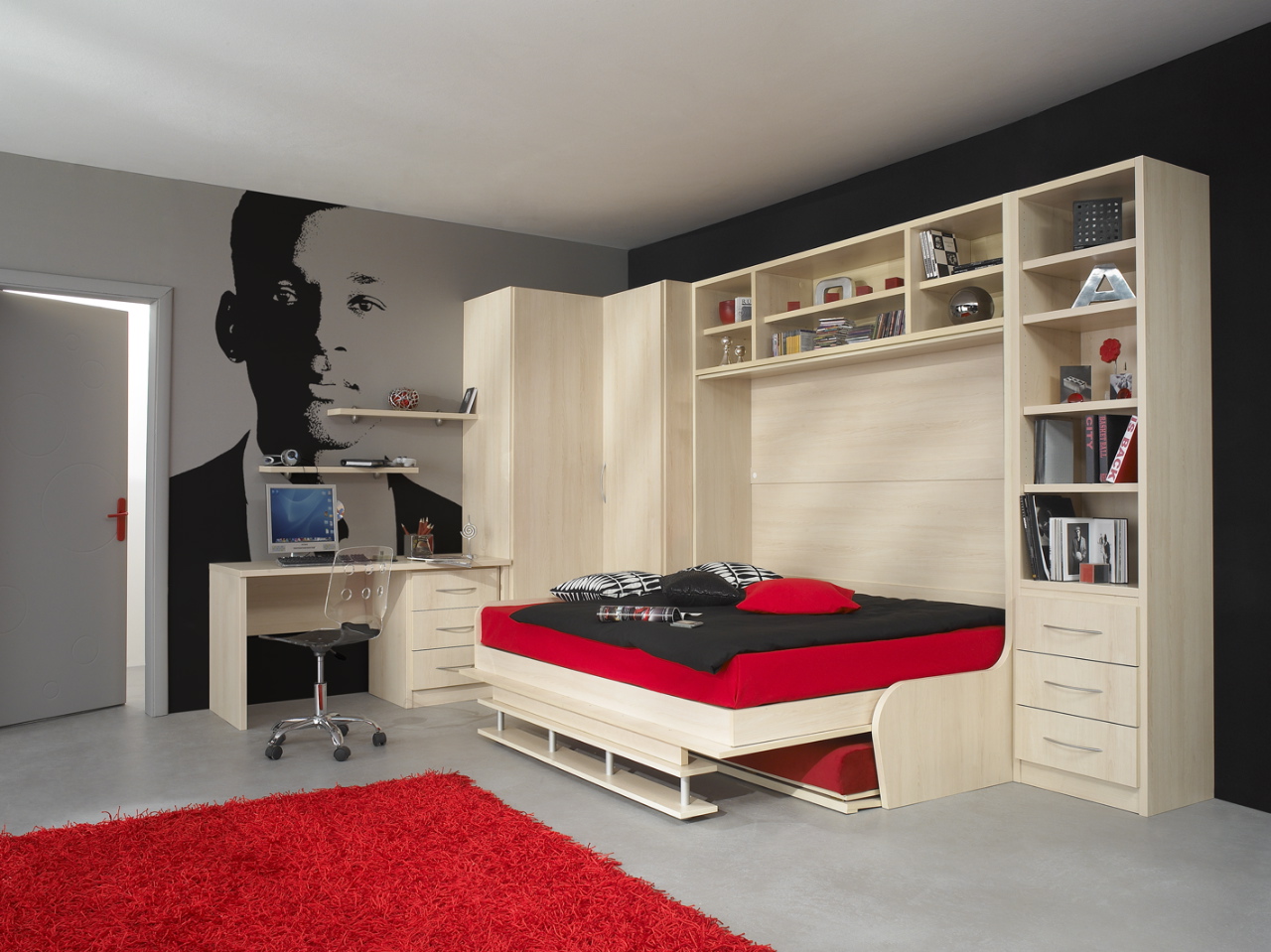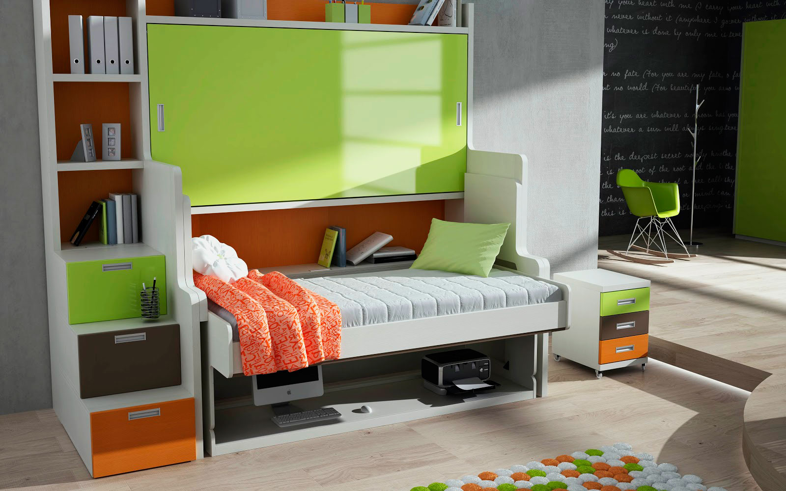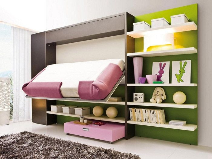 - For the student one of the best options will be a transforming bed for children.in which two objects change places day and night: in the daytime the bed goes up, and the table moves down. There is enough space under the table to put small objects or toys there. The advantage of this design is that the child’s room will always maintain order and there will be enough free space for games.