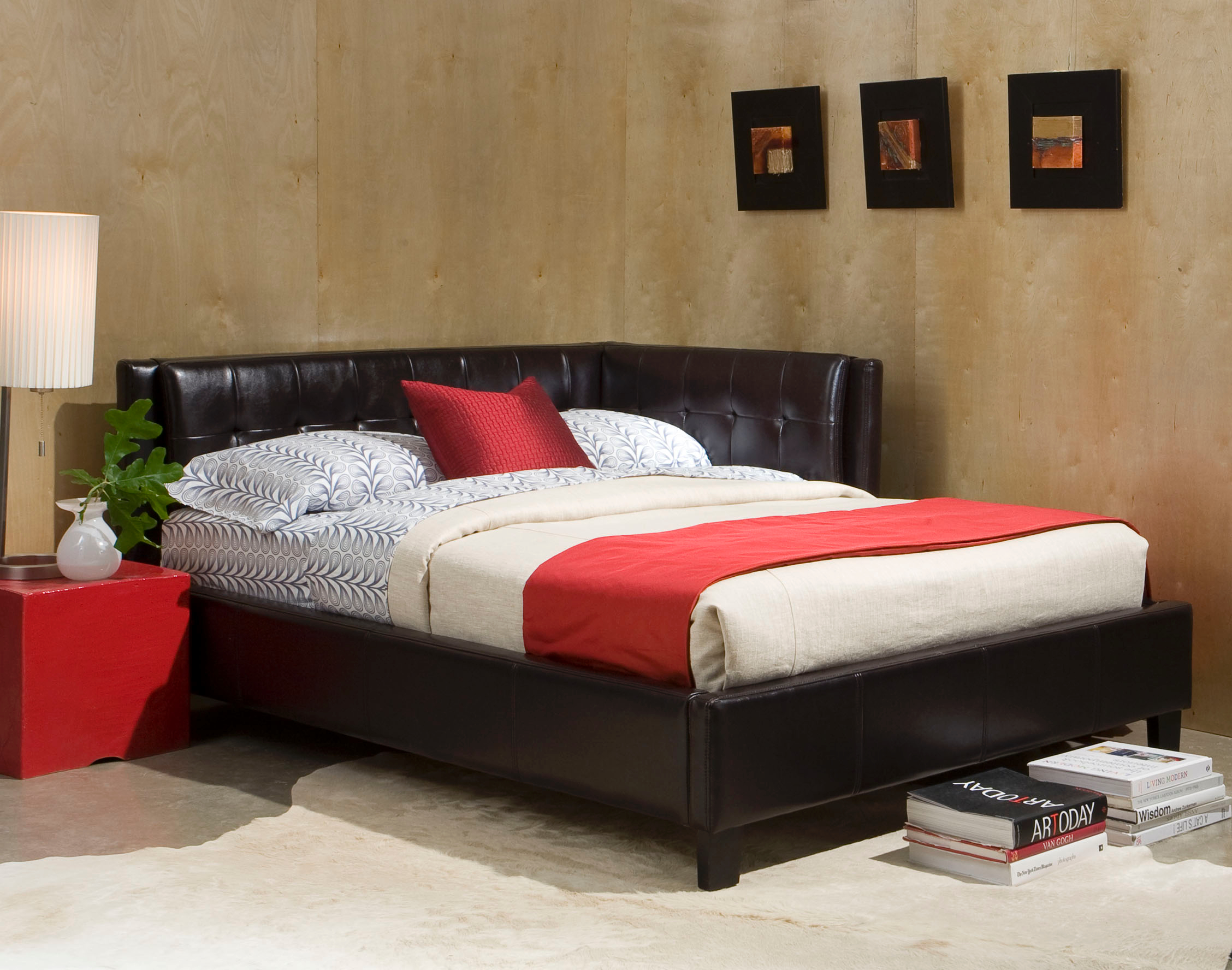 - Finishing Corner Double Bed can be made of the same materials as the classic finish: natural or artificial leather, supersoft, velor, jacquard, flock, shennill - the choice is quite large. Thus, the bed can be chosen for any interior.